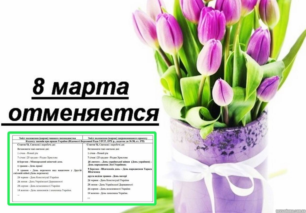 - March 8 will be canceled in Ukraine, — draft law on the website of the Verkhovna Rada.