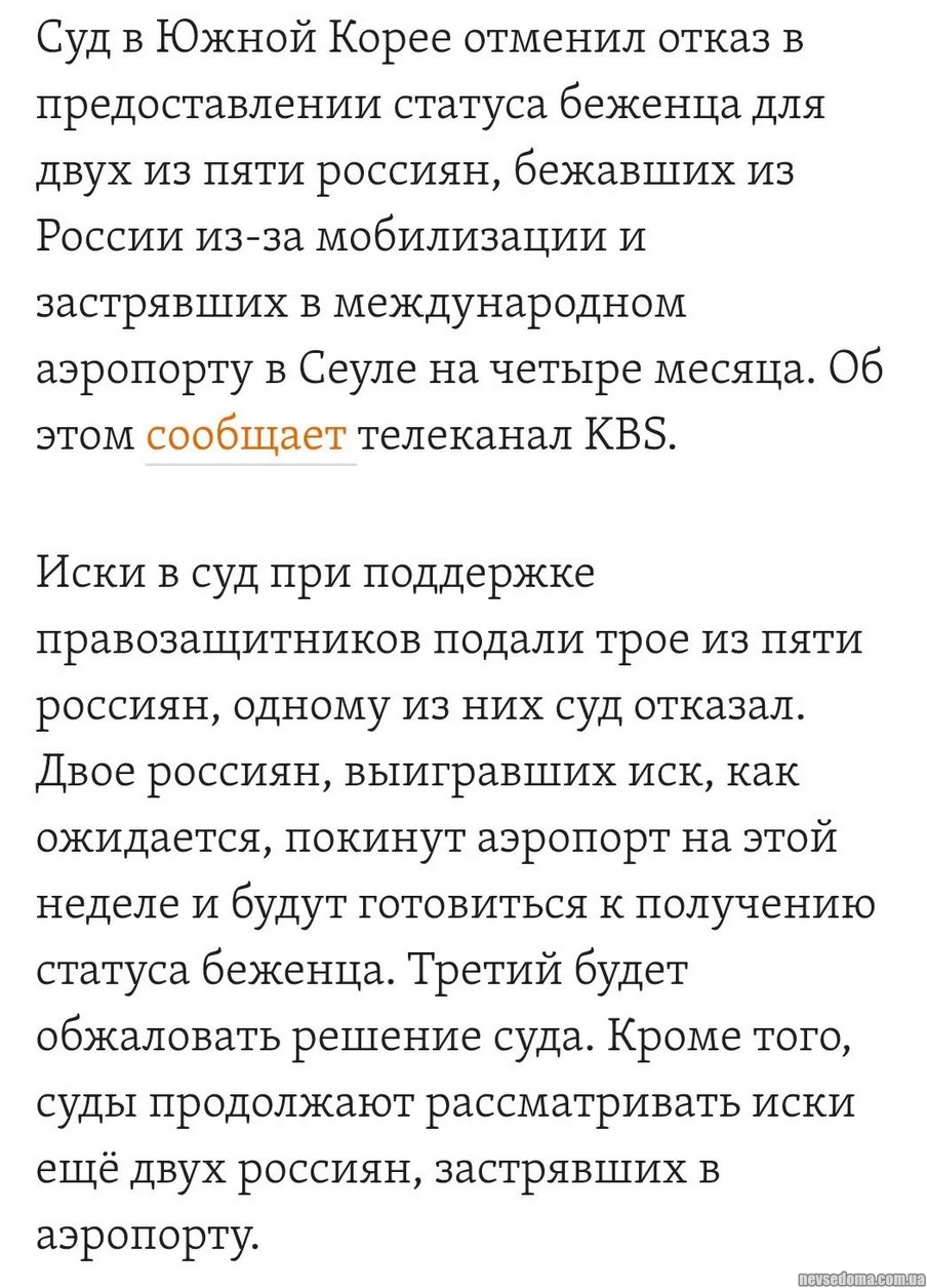 - Seoul will let in two of the five Russians who fled from the mobilization to Korea. 🎉 Lawsuits for two more are in progress. One will appeal the decision
