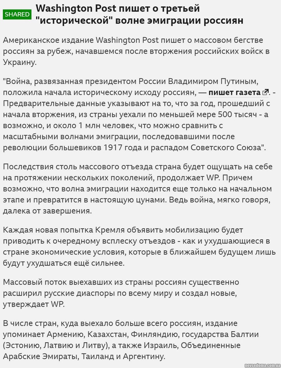 - The Washington Post: where Russians emigrated in 2022
