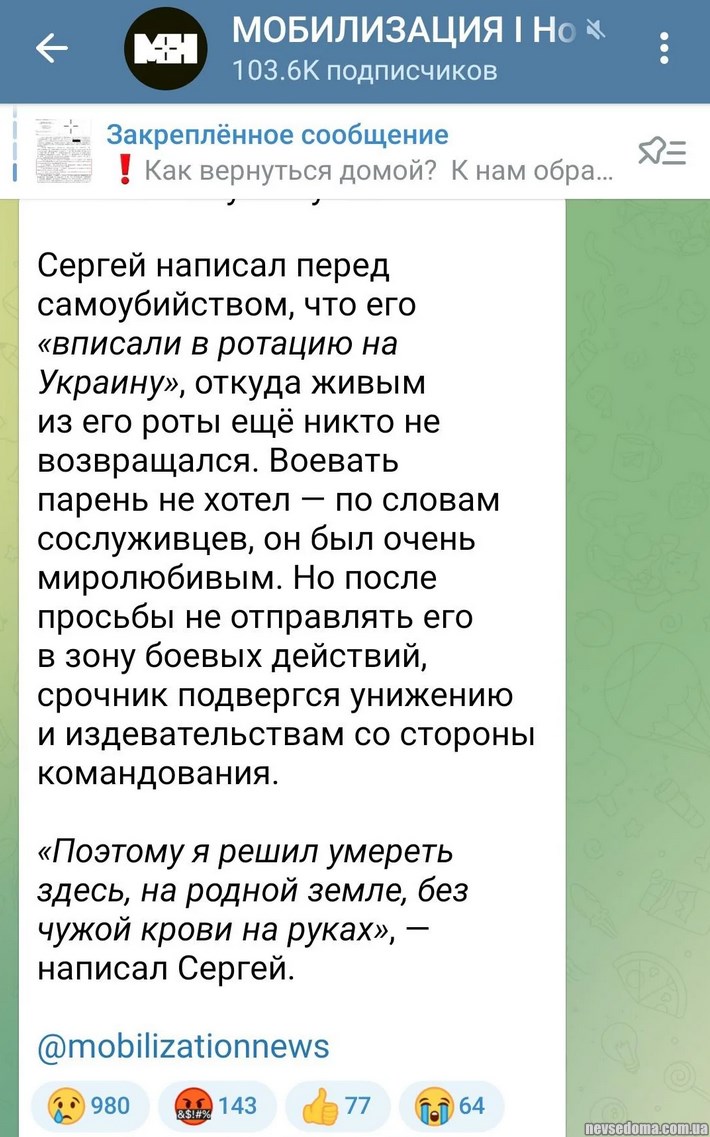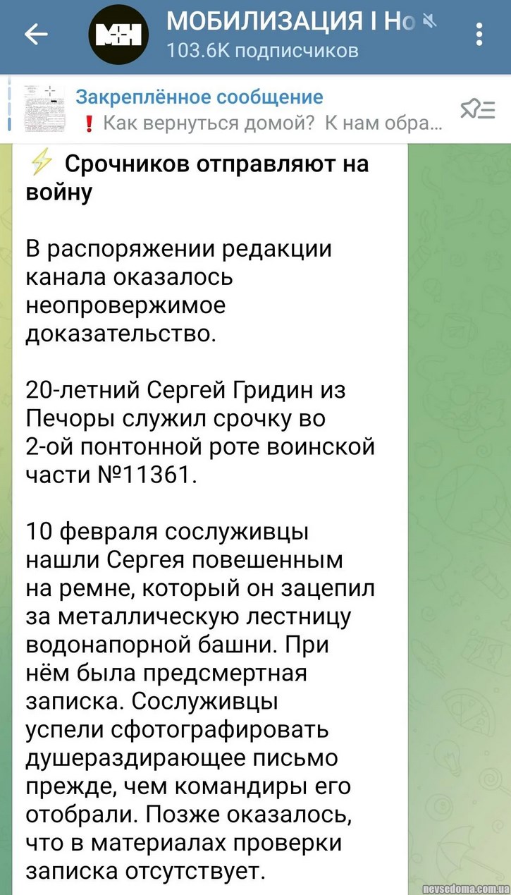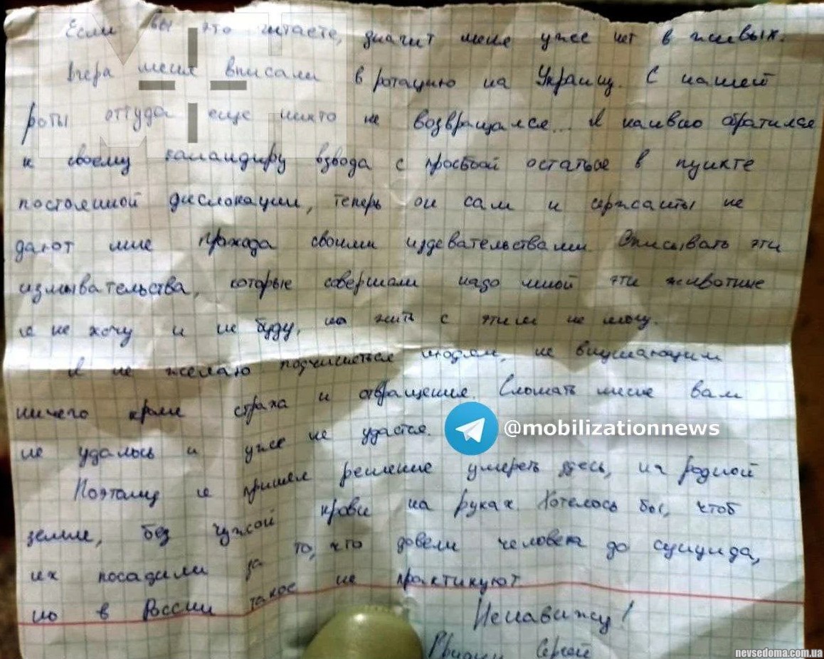 - "Therefore, I decided to die here, in my native land, without someone else's blood on my hands." The Russian conscript hanged himself, because after refusing to go to war, he was humiliated and bullied by the command.