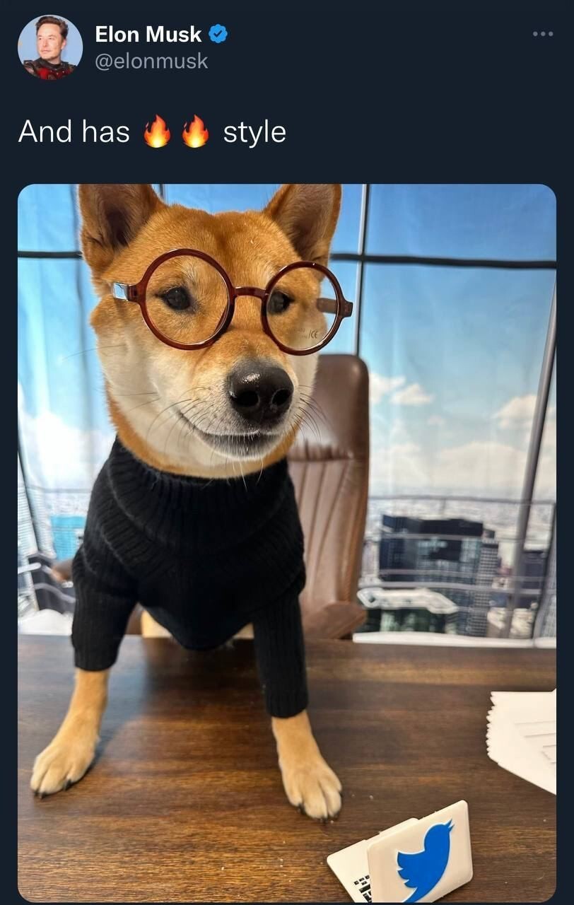 All we know about the new CEO is that he's a Shiba Inu, his name is Floki and he is a very good boy. Musk turned it on in September 2021.