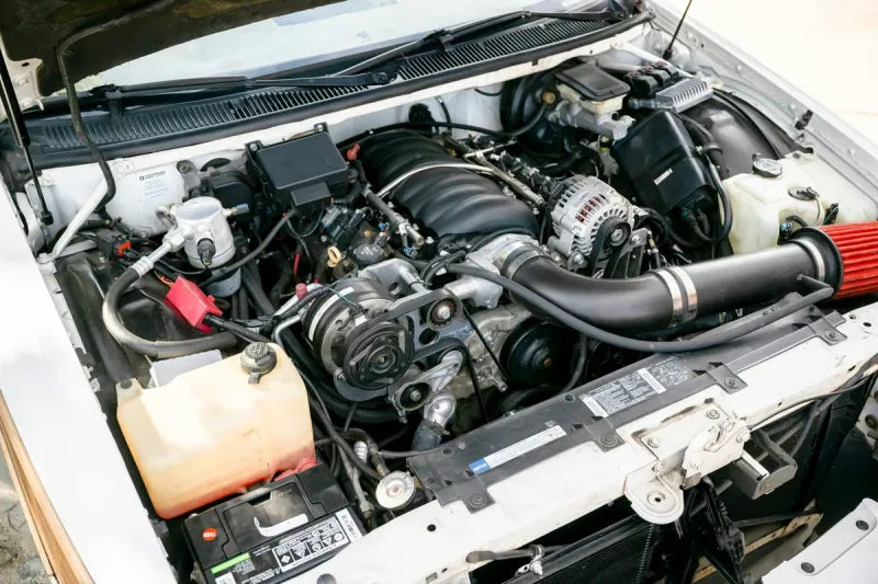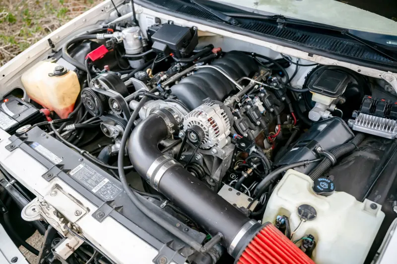The engine is not original. Zero resistance filter under the hood of a family car looks especially bold