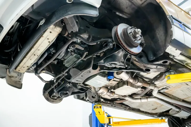 I immediately heard the creak of leather seats ...