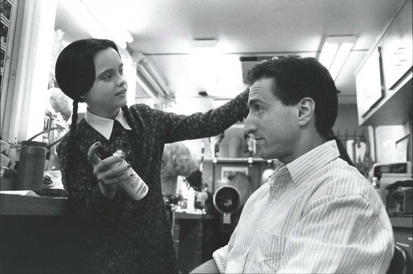 Christina Ritchie styling screenwriter Paul Rudnick on the set of Addams Family Values
