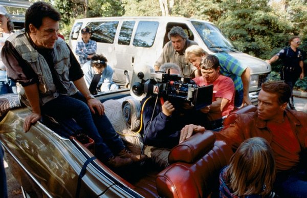 Director John McTiernan tells Arnie how his character should act on the set of The Last Action Hero