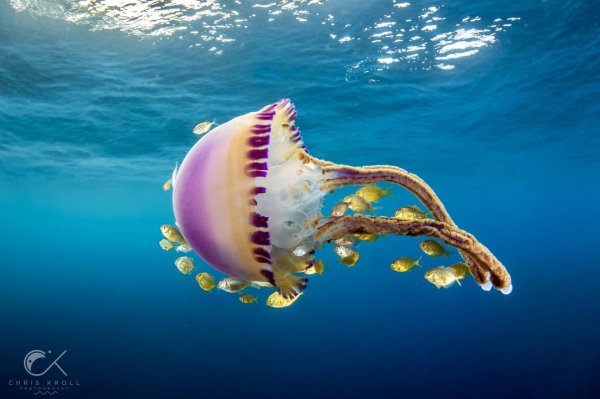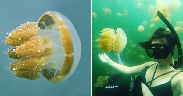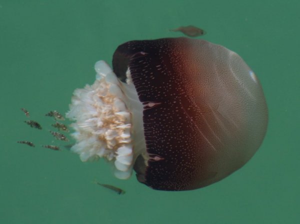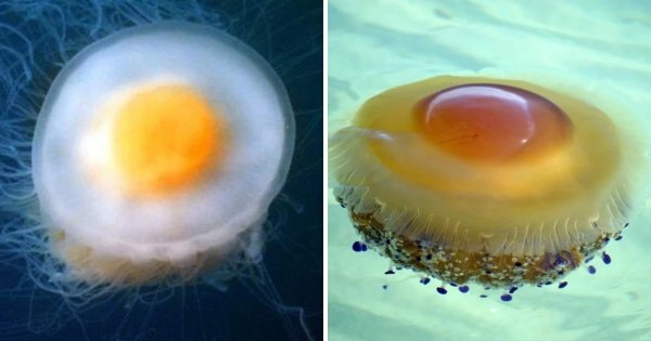 The fried egg jellyfish gets its name from a comical resemblance to this dish. The tentacles of the creature practically do not sting, therefore divers often notice many small fish between them, which enjoy using them as cover.