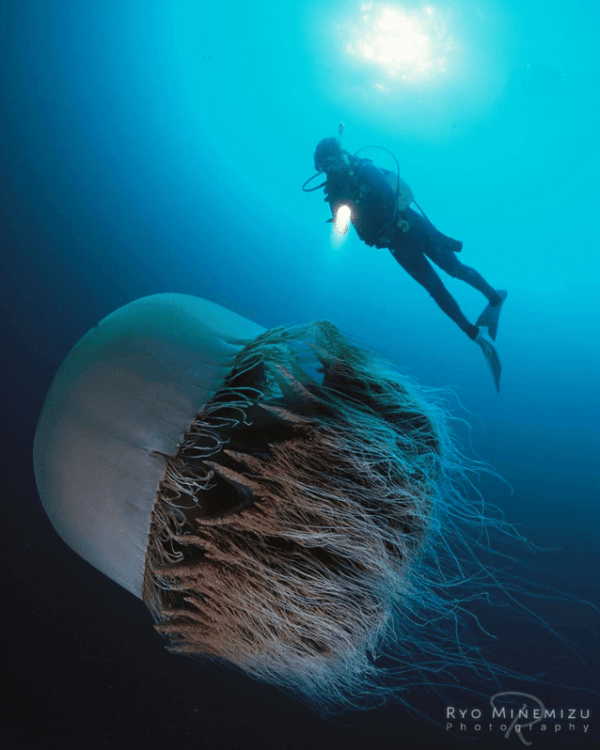 It is one of the largest jellyfish in Japanese coastal waters. Its weight can reach the mark of 200 kilograms.