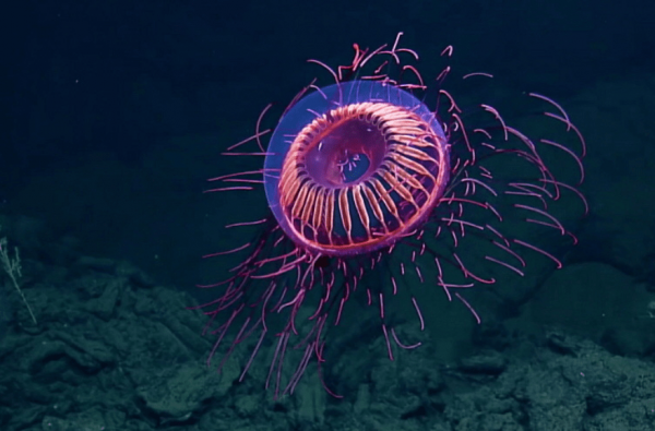The rather creepy-looking jellyfish is found in all oceans except North Arctic. You can see it at depths from 900 to 3900 meters. Over the past 110 years, only 115 observations.