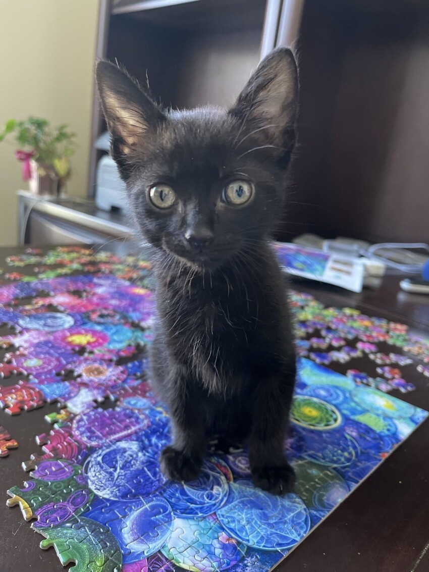 In December 2022, she joined our family Snowball. She decided to help us complete the puzzle. She is the first of our pets who are trying to eat the pieces!