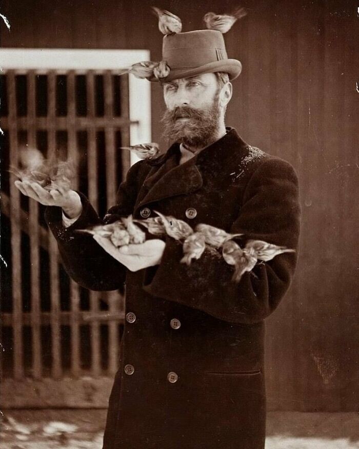 30. Portrait of a Victorian man with birds in Norway, Robert Collett (1842-1913). Photo from around 1910