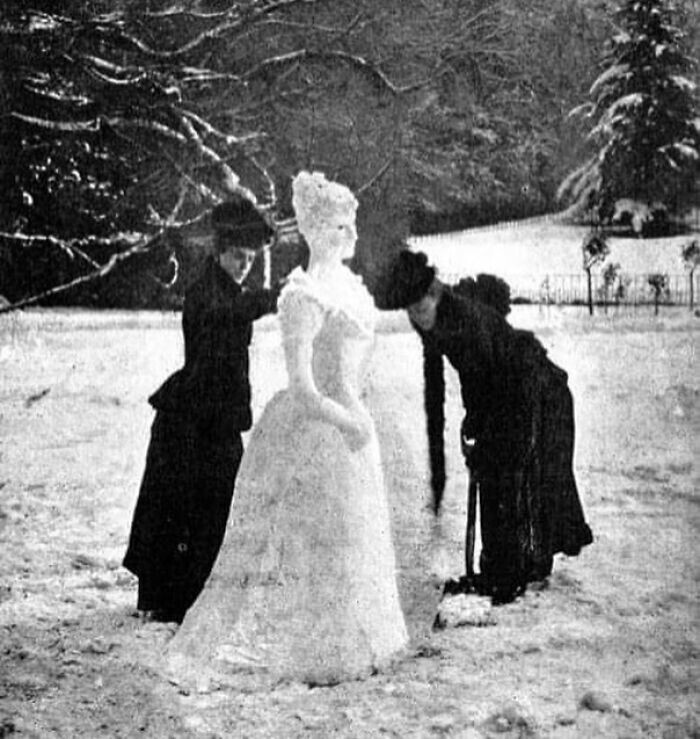 1. Two ladies are making a snow lady. This photograph was published in the Strand magazine in 1892.