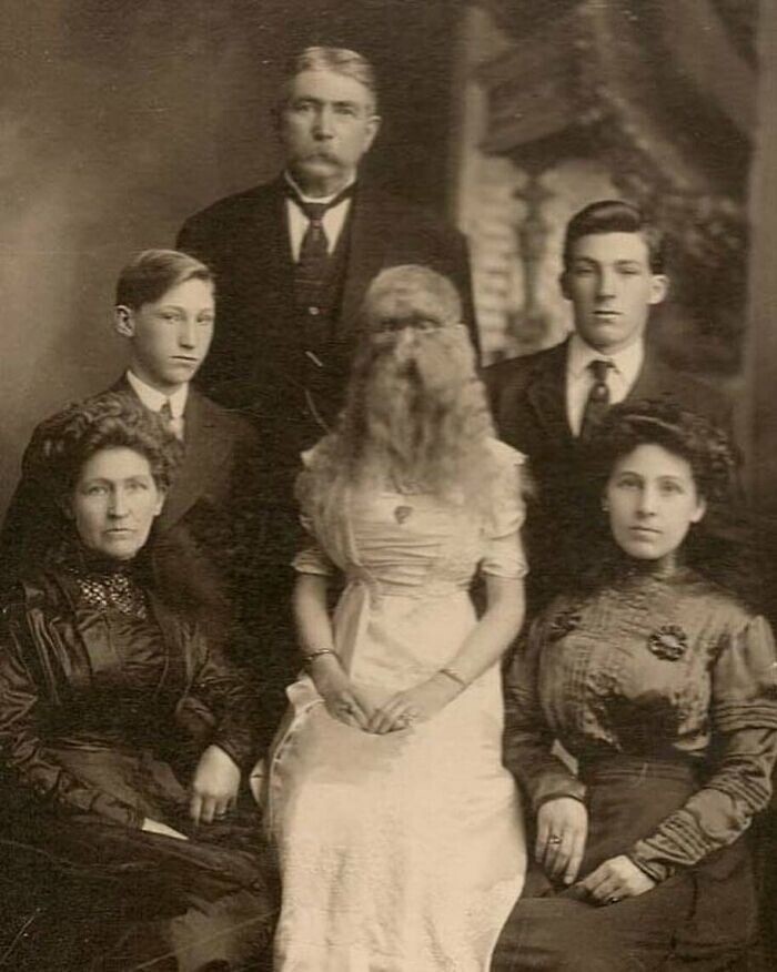 14. Alice Doherty - "wool girl from Minnesota" - posing with his family in a typically sombre Victorian portrait from the early 1900s years