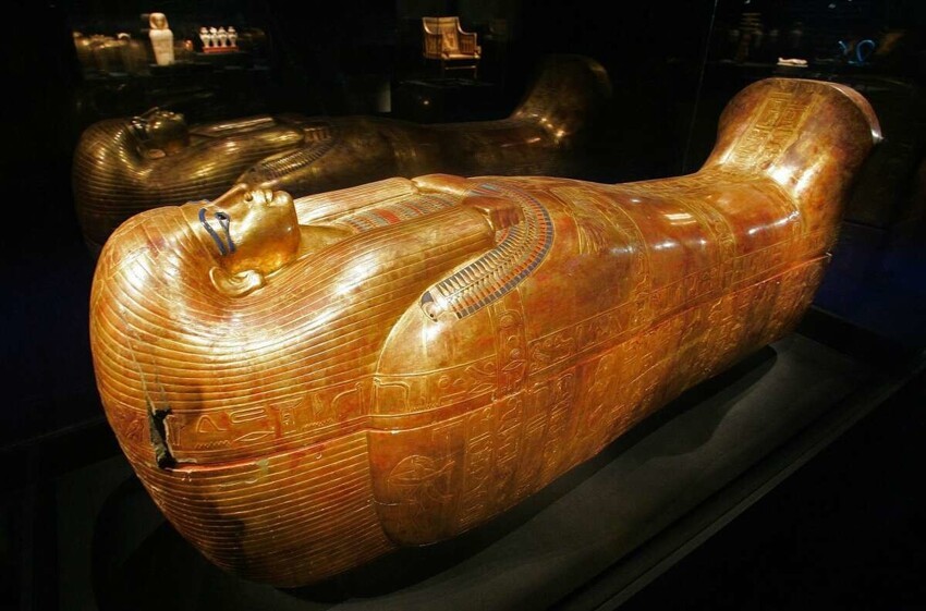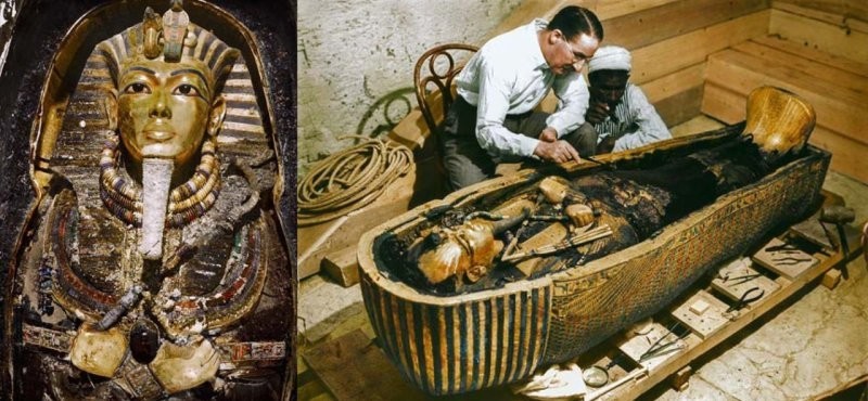On February 16, 1923, a British expedition led by archaeologist Howard Carter found the main treasure of the pyramid: a stone pharaoh's sarcophagus. When the sarcophagus was opened in February, inside was golden coffin with his mummy. The sarcophagus was gold and contained over 100 kg pure gold, and the body of the pharaoh located there was mummified.