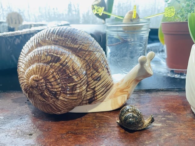 I found a small snail at a flea market to go with my big one.