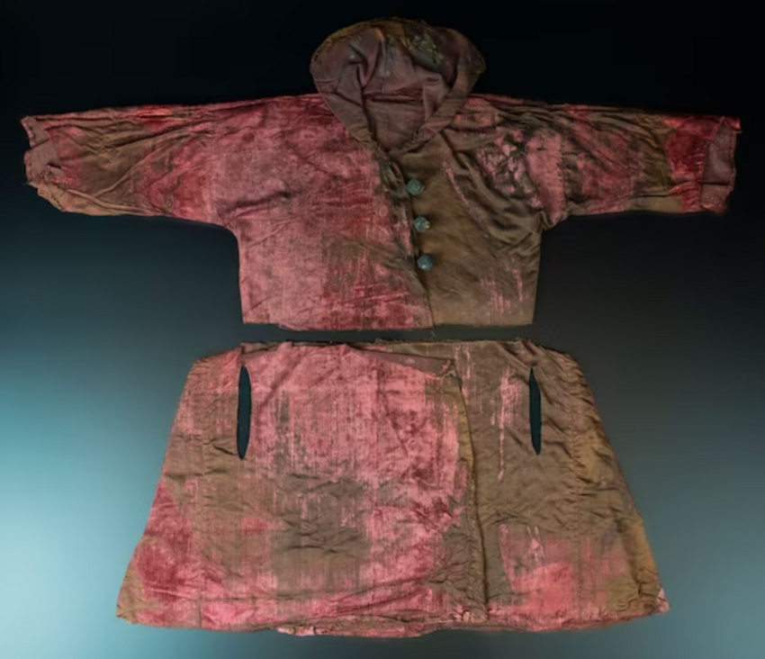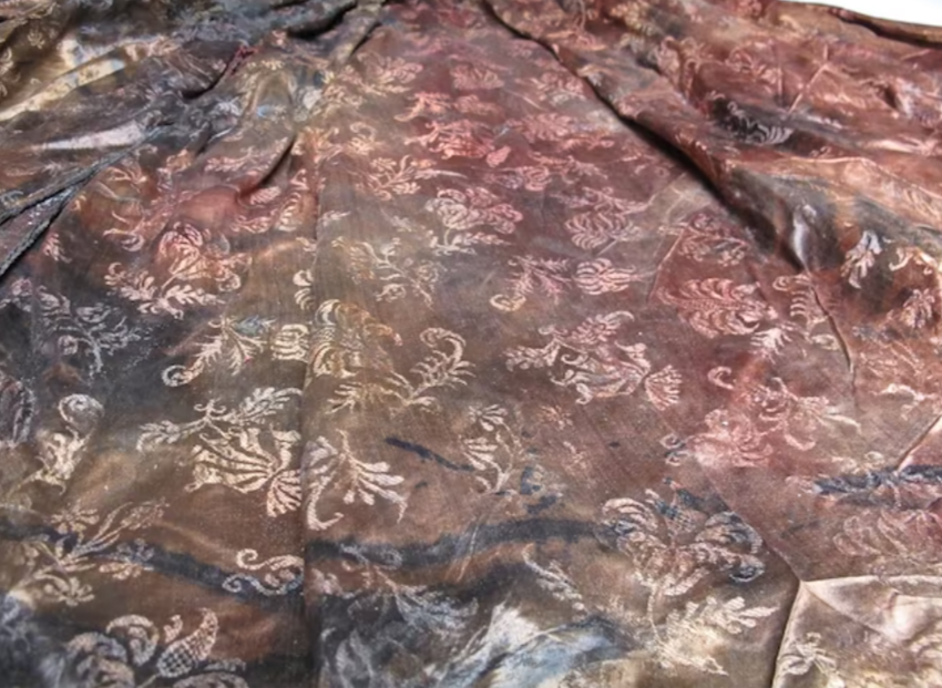 The ship found luxurious and unusually good surviving clothes, including an elegant dress embroidered silver knots, exquisite damask dress, women's dressing set and mirrors, and an Ottoman-style velvet caftan, dyed Mexican cochineal - a ruby-colored pigment obtained from insects in America.