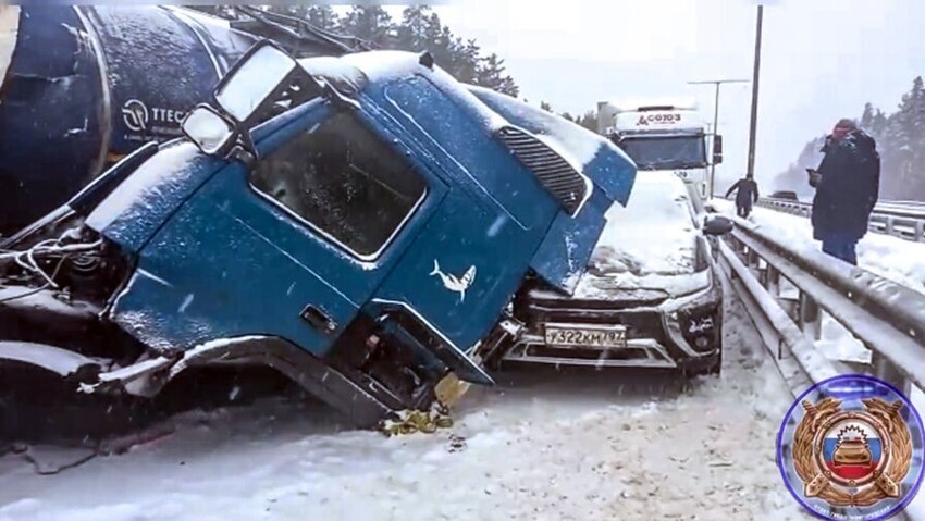 There, at about 11 a.m., two trucks collided, after why Renault Duster crashed into them and followed each other and others cars. 14 people were injured - one adult and four children. died a woman is the driver of one of the cars that crashed into a truck. Total for More than 40 vehicles collided in this area.