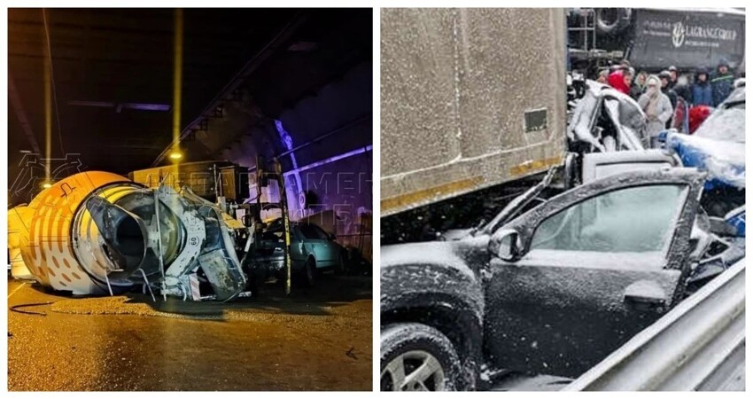 In the Lefortovo tunnel in Moscow, a concrete mixer demolished cars at full speed, and more than 40 cars collided on the M-11 highway (7 photos + 1 video)