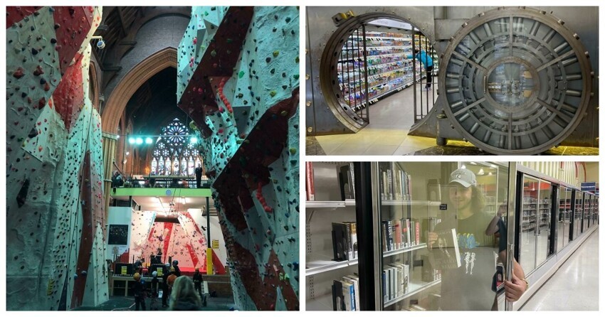 21. The old church was turned into a magnificent center climbing, retaining the original stained glass windows and the altar. Mancunian climbing centre, UK