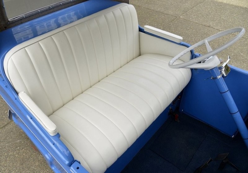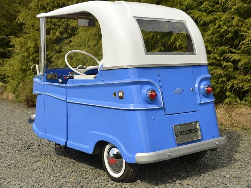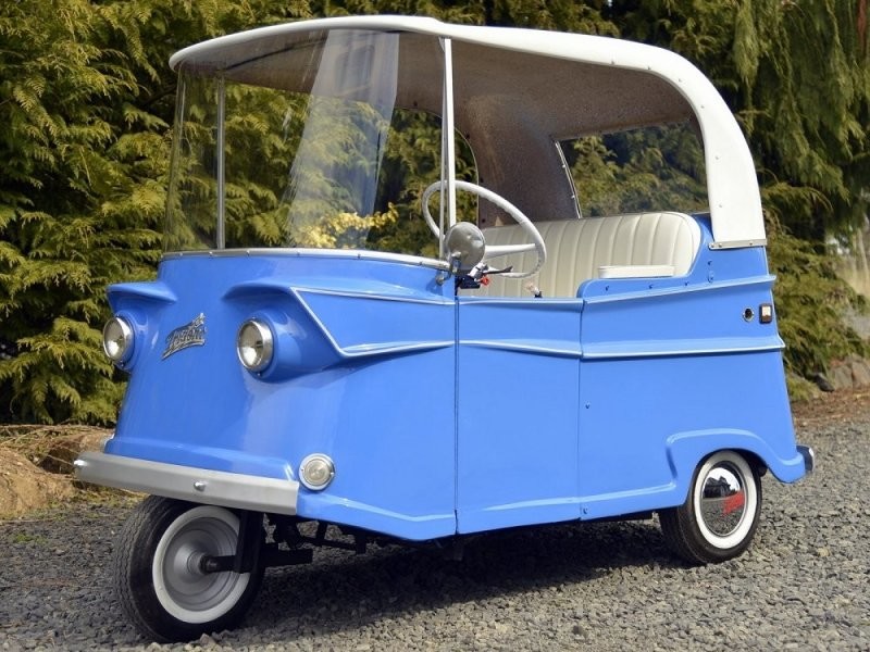 The first Taylor Trident model R saw the light of day in 1959, produced by Taylor-Dunn Manufacturing (California) very limited edition until 1963. The factory, which exists by the way, is still since then, has been engaged in the production of delivery electric carts, therefore this The machine is also electric.