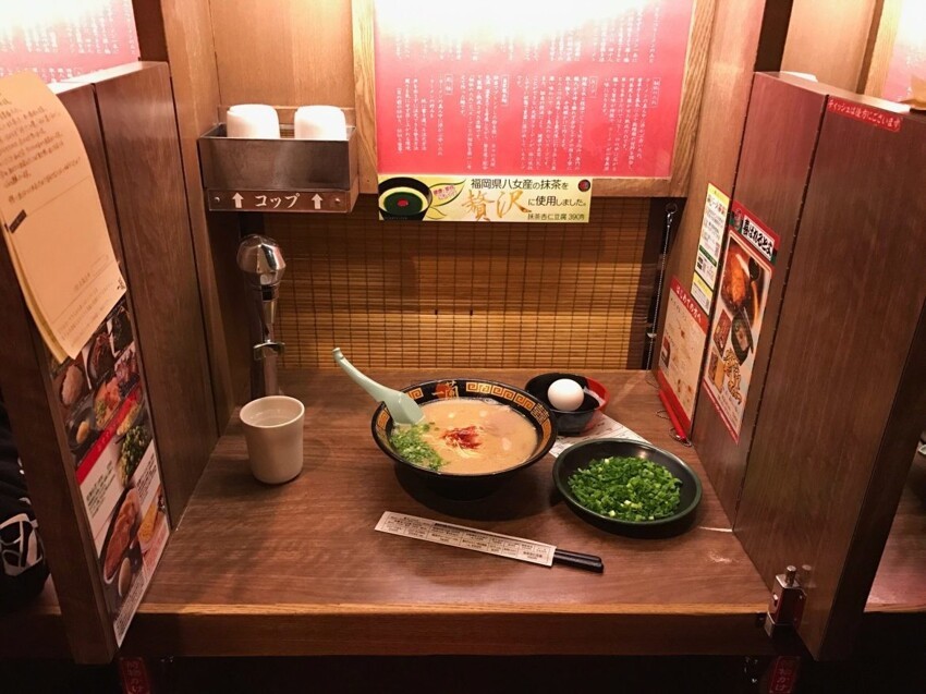 In some, tables were set up exclusively for one person and each place is a separate booth where you can just sit alone with yourself and eat in silence. By the way, there even those who have friends come in - just sit quietly and secluded, without annoying hubbub around, without the cries of children.