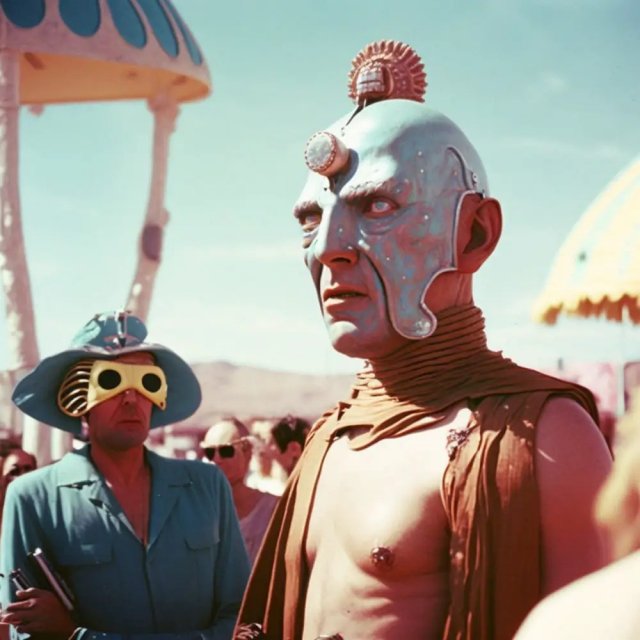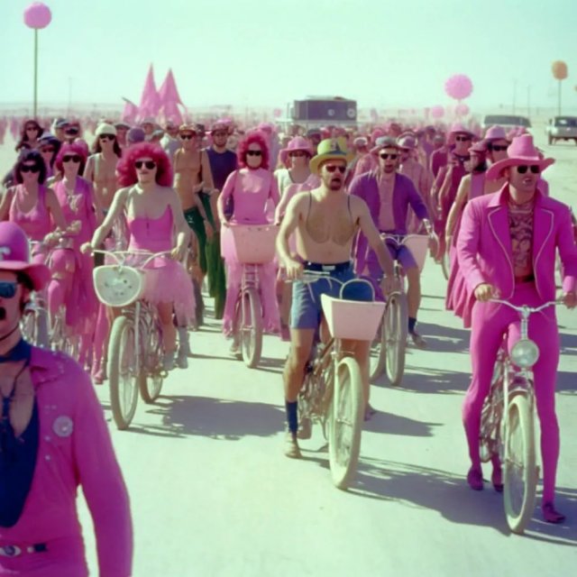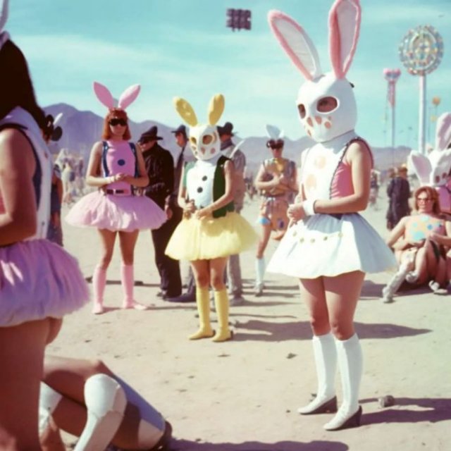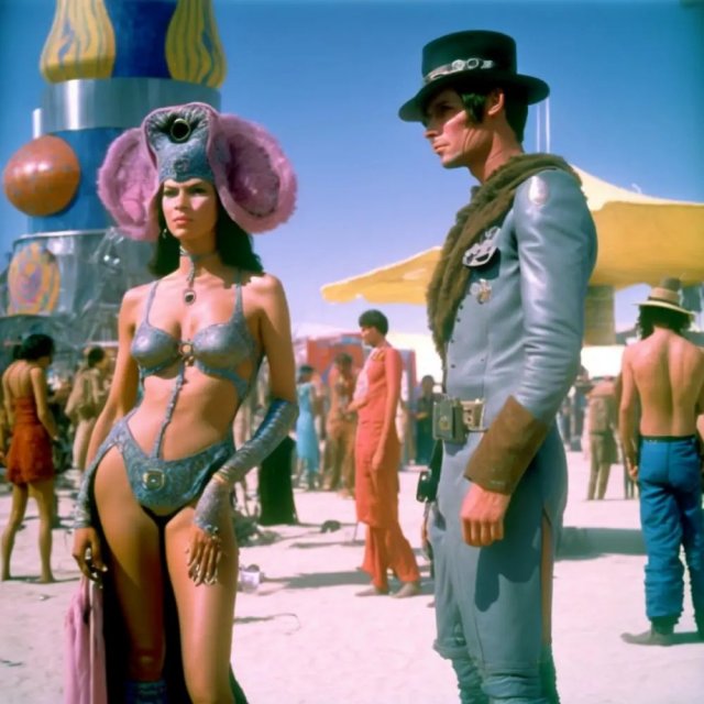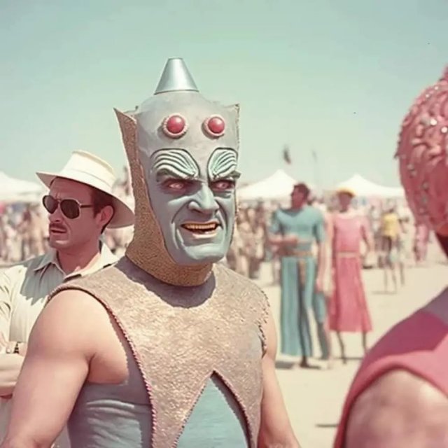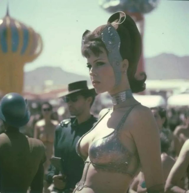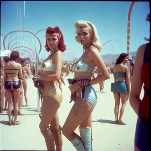 Known since 1986, the Burning Man festival held annually in the Black Rock Desert, Nevada. passes The event takes place on the last Monday of August and lasts for eight days. The creators say that this holiday was created to give people opportunity for radical self-expression. And every year the event attracts thousands of people from all over the world. Bright costumes, slender girls, coslayers, unusual cars and a huge statue of a man who, logically names are burned - all this is the festival "Burning Man". And here the neural network showed how it would have looked in the distant 1960s.