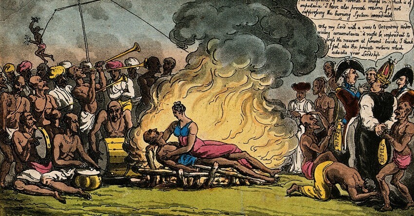 "The Burning Ceremony of an Indian Widow with the Body of Her Deceased Husband", from A History of China and India in Pictures