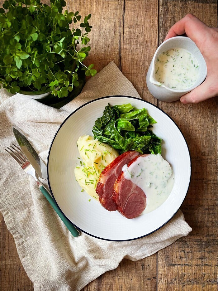 Bacon, cabbage and potatoes with parsley sauce, Ireland
