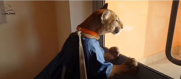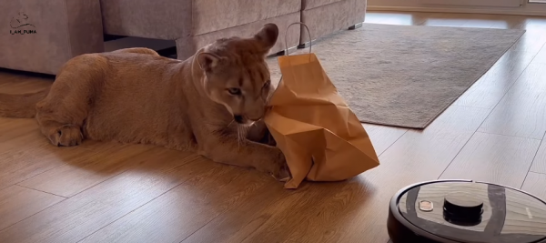 The family of Alexander and Maria Dmitriev bought a cougar named Messi in 2016 (then the cougar was only a year old). The couple first saw the animal in petting zoo and decided to buy it. Now the cougar lives in converted Penza apartment. The couple says they decided to take this step, because since childhood, Messi had a lot of problems for health: from chronic cystitis to muscle atrophy.