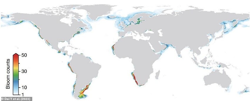 The researchers also found that the average annual observed flowers increased by 59.2% between 2003 and 2020, which is equivalent to 2.19% per year. This is an increase in the frequency of flowering in highly correlated with ocean temperature, which allows suggest that favorable seasons for blooming in temperate seas climate became longer due to higher temperatures, say andinvestigators. Flowering frequency also increased with spatial temperature gradient in many areas, including California, the Persian Gulf and the Canary Current. This suggests that weak ocean currents caused by rising sea temperatures, promote the growth of algae.