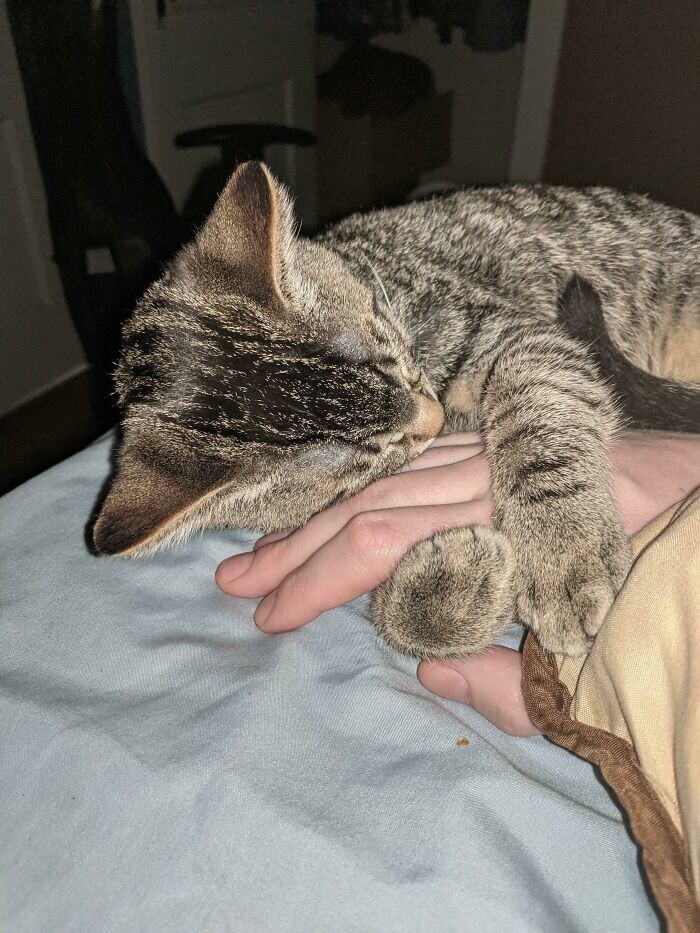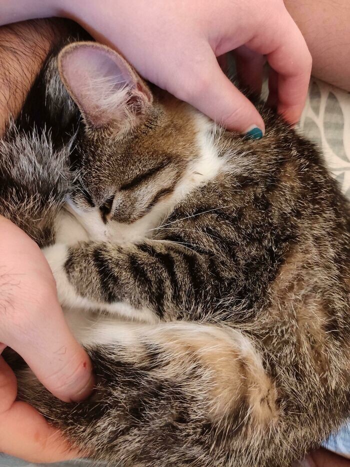 "The kitten I adopted a week ago fell asleep in my arms"