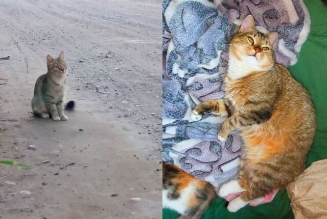 Transformation of a stray cat who was abandoned with four kittens on the street