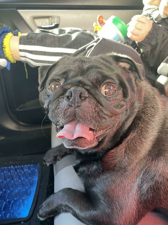 "This is my miracle. I took him from a shelter. He does not tease - he has no teeth, so his tongue is always sticking out"