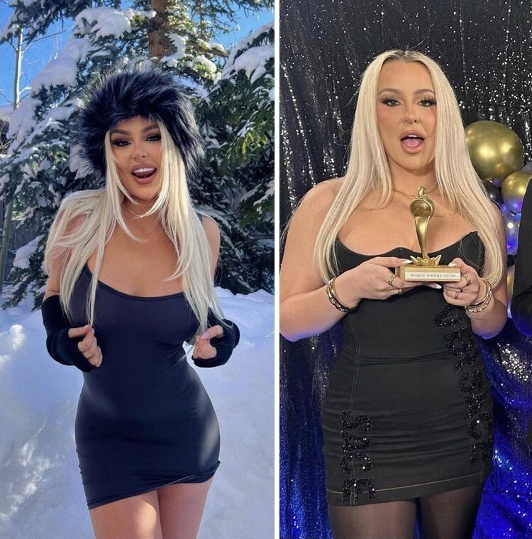 Blogger Tana Monjo: photo from her profile and photo from the Streamy Awards