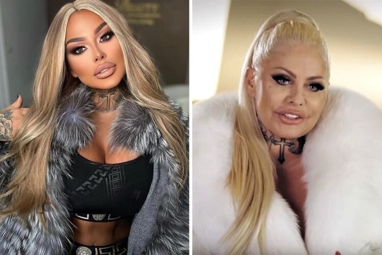 Polish star Laluna Yunik from the TV show "Queen of Life" ("Krolowe Życia"). If not for the neck tattoo, we would never believed it was the same person. Perhaps one of the brightest photoshop tricks.