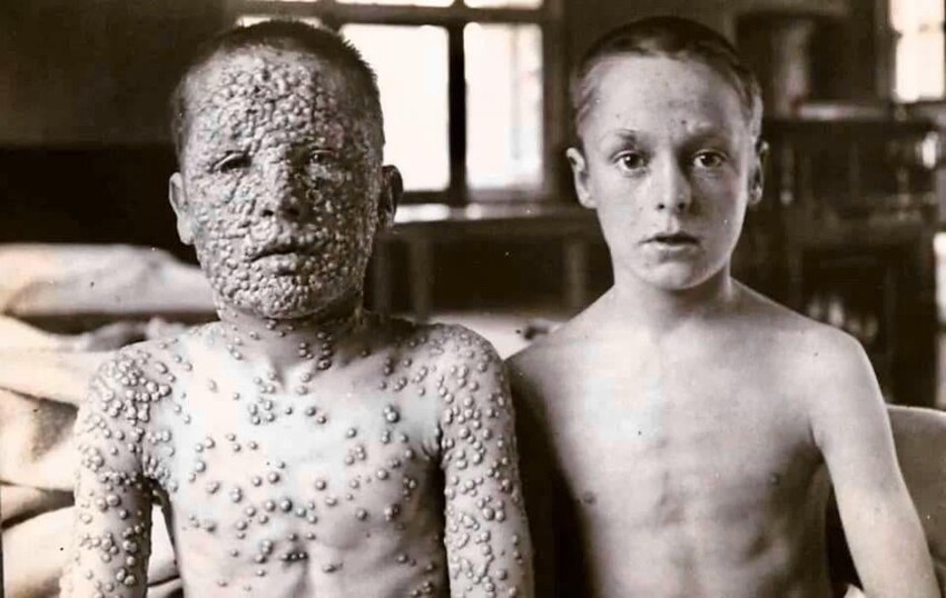 2. These two boys were exposed to the same source of smallpox. One was vaccinated, the other was not.