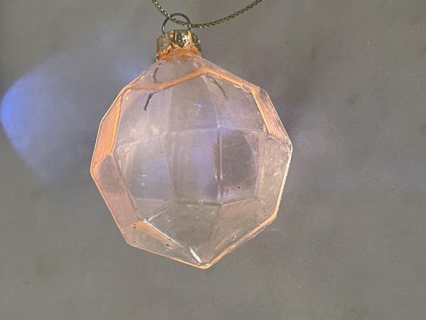 "The decoration is glass and slightly fluoresces under ultraviolet light."