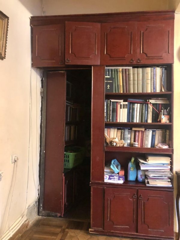 It turns out that in our old house there is a bookshelf that you can open and get into a small room.