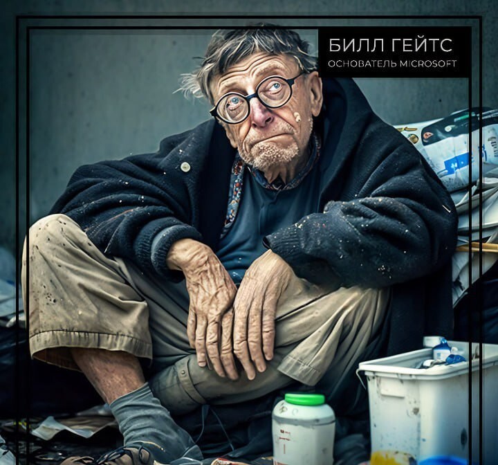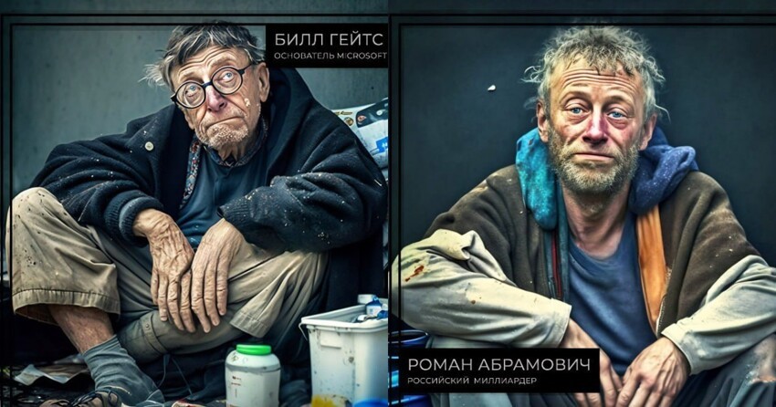People keep messing around with the Midjorney neural network, this time they decided to see what famous rich people would look like if they became bums.
