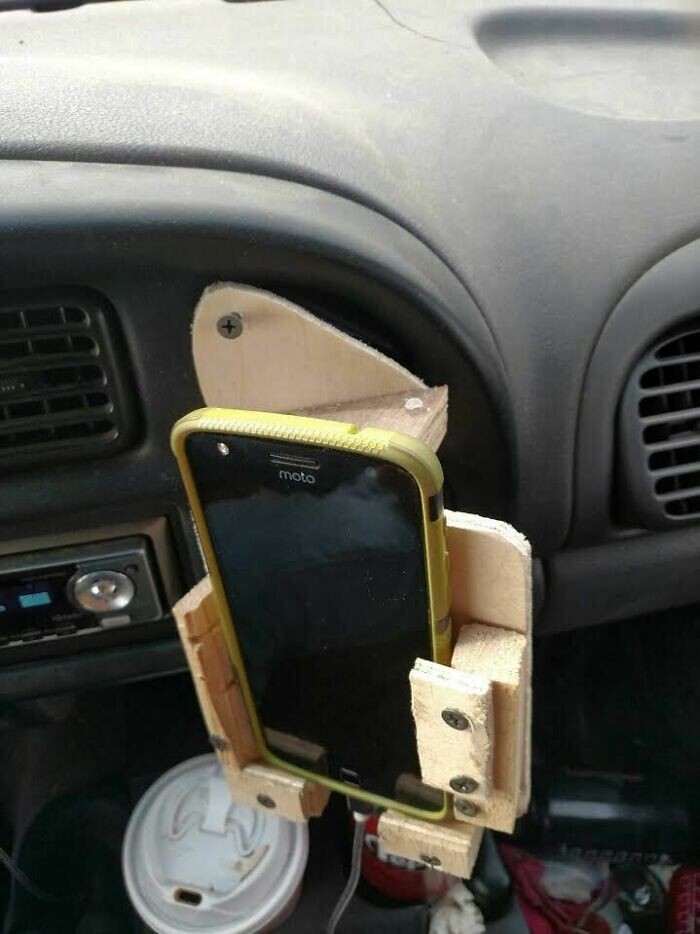 "Phone holder for a trip of 1200 kilometers. I had 15 minutes and very few tools at hand"