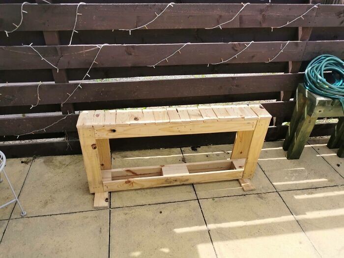 "Gave old boards a second life - made them into an ugly garage workbench. Very strong and very scary"