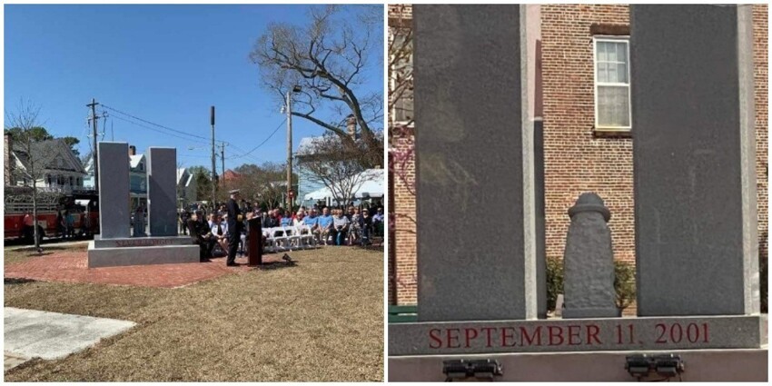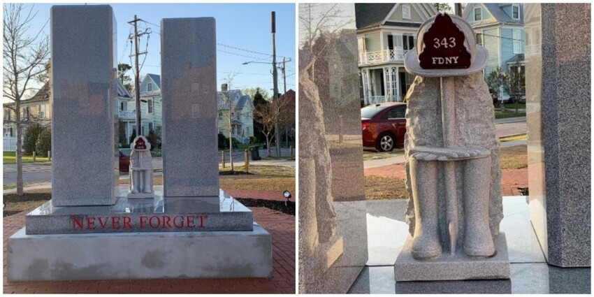 The firefighters museum in New Bern has a strange memorial in memory of the tragedy of 2001, the largest terrorist attack in history, when The skyscrapers of New York were hit by two planes controlled by terrorists. The monument consists of two granite skyscrapers and a helmet between them. fireman.