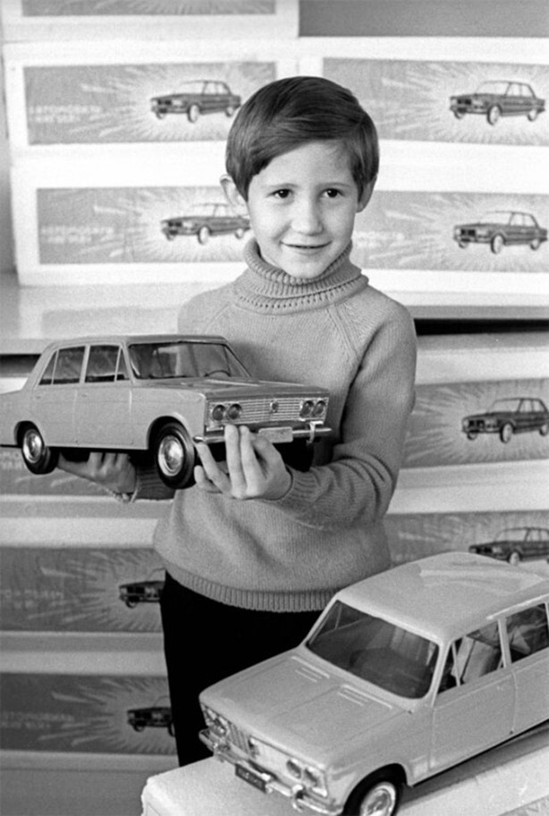 Reduced copies of the Zhiguli car in the Volgar store. October 25, 1980. Photo by Yuri Belozerov