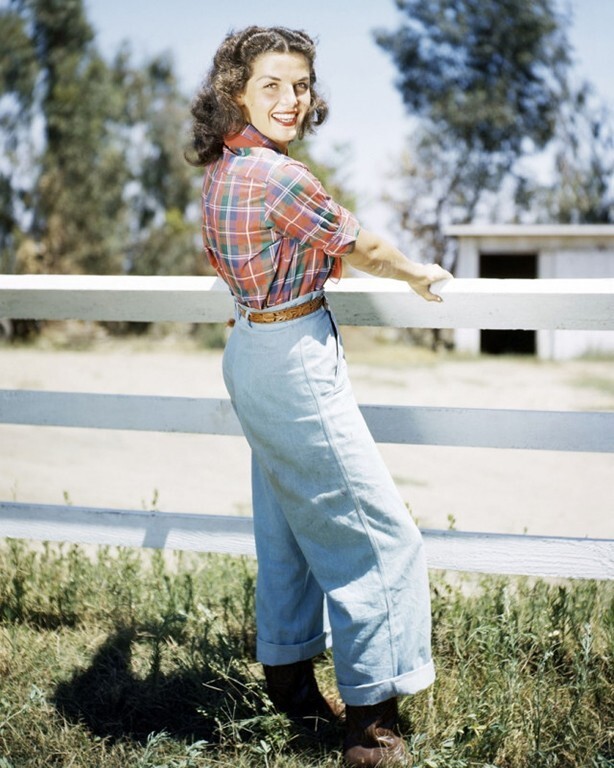 In 1934, the American company Levi's released the first Women jeans. True, the overwhelming majority of them were worn by girls from countryside living on farms and ranches. What is not surprising rough fabric is great for challenging life outside