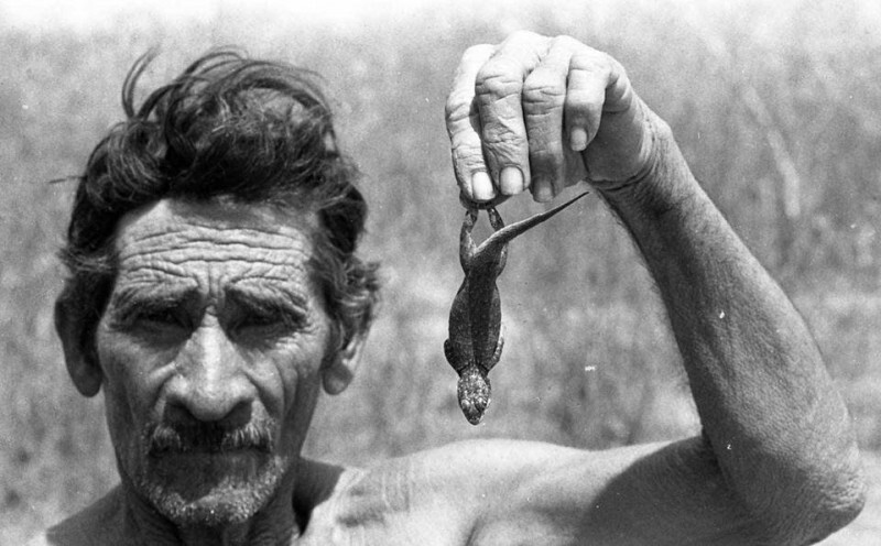 A farmer is about to eat a lizard to keep from starving in Ceara, Brazil. August 1983