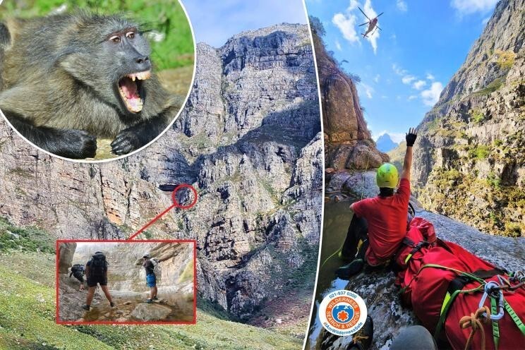 Three tourists in South Africa suffered leg fractures in attack angry baboons, who dropped a large boulder on them and threw small stones