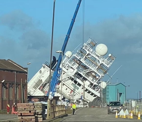 Ship owned by Microsoft co-founder capsized in the port of Edinburgh (5 photos)