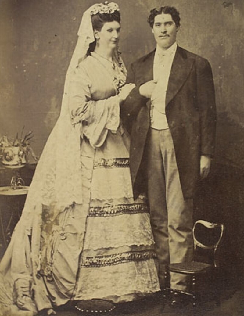 Anna's manager, seeing Martin on tour, literally heard the crunch of bills. After all, a couple of giants will allow you to earn twice as much money. And lured the artist. They began to portray a couple, and then didn't have to show. The artists were warm to each other feelings and in 1871 they legalized the relationship. The ceremony was attended Queen Victoria herself, who presented the newlyweds with a gold watch.