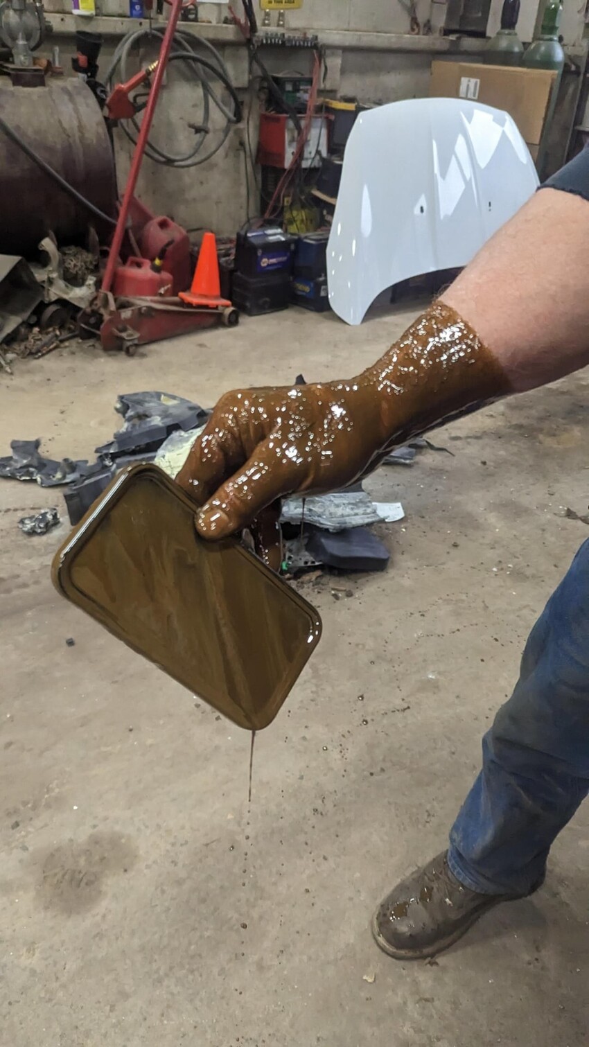 1. I work in a service and my phone fell into used motor oil.
