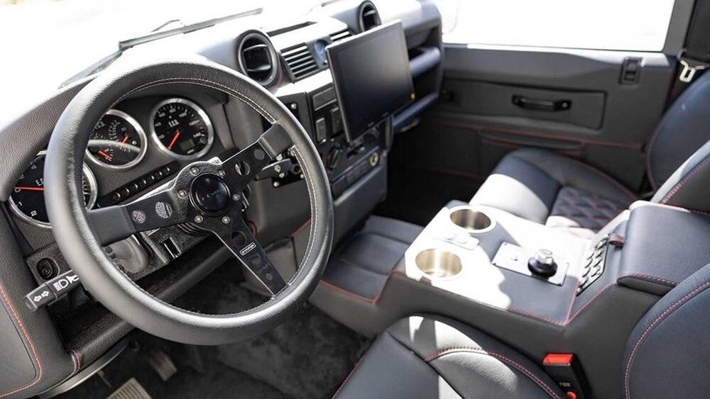 For the convenience of a high customer, the tuners redid the place driver's seat mounts: it is installed lower, and the ranges settings have been expanded. The result was a forced optimization dashboard placement. The stock front seats have been replaced with more comfortable chairs Corbeau Trailcat. In addition, in the salon Defender installed Momo steering wheel and modern Alpine media system with JL acoustics audio.