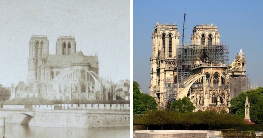 9. Notre Dame de Paris, France, rear view - 1850 and 2019